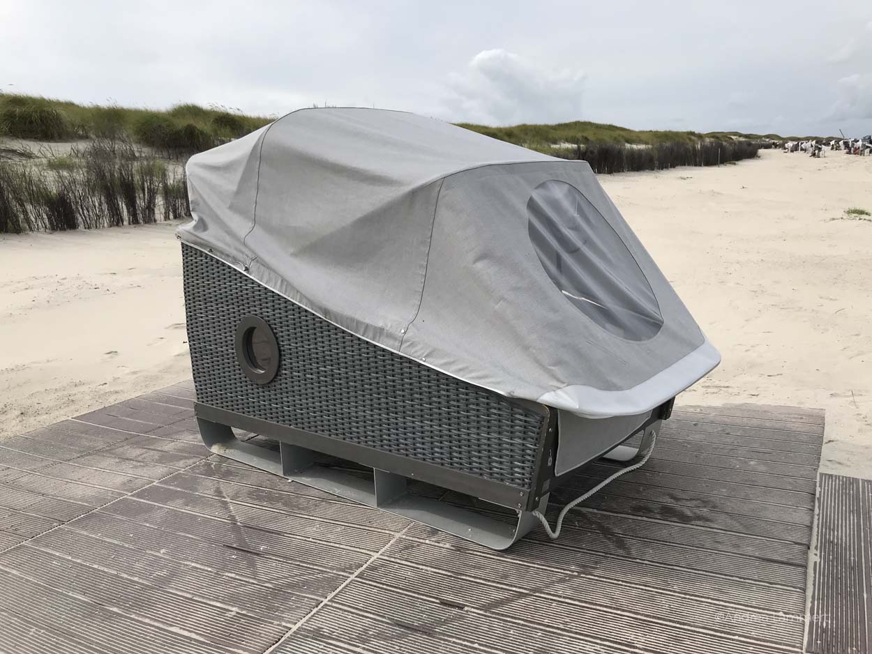 Thalasso-Plattformen: Nordstrand, Zuckerpad und Dünensender – Das Holz ist angenehm warm unter den Füßen, Wolken ziehen wie ein Spielfilm am Firmament vorüber und dann diese gute Luft: Auf Norderney ist schon das Atmen Therapie. Thalasso heißt diese Jahrtausende alte Kurform mit den Elementen des Meeres: Salz, Luft und Wasser. Spaziergänge gehören dazu und dafür hat die Insel einen eigenen Thalasso-Weg eingerichtet. Immer mit den passenden Möglichkeiten, eine Pause zu machen. Ob am Nordstrand mit der hoch aufgeständerten Plattform, die sich mit der Wendeltreppe erreichen lässt oder auf dem langen Holzsteg am Zuckerpad. Der lange Holzweg ist übrigens prima mit dem Rollstuhl befahrbar. Und am Dünensender warten gemütliche Sitzsäcke aus Korb auf Menschen, die Pause machen möchten.