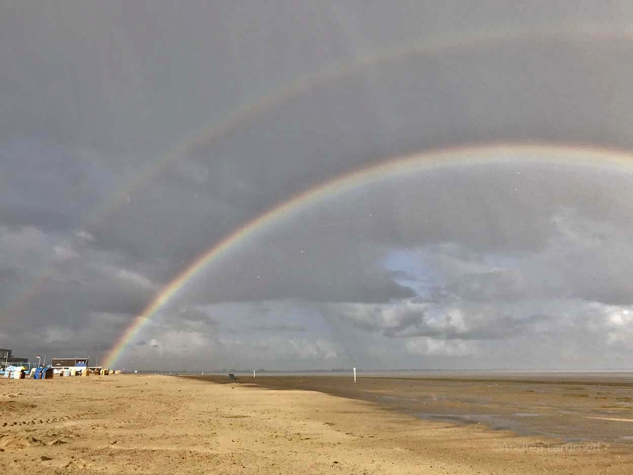 Drei Jahreszeiten an einem Tag – das ist normal an der Nordsee. In Ostfriesland ist das Wetter geprägt vom Wechsel aus Sonne und Regen. Was mancher lästig findet, weil er die Regenjacke ständig dabei haben sollte, finde ich wunderschön, denn für mich ist Ostfriesland die Landschaft der Regenbögen.