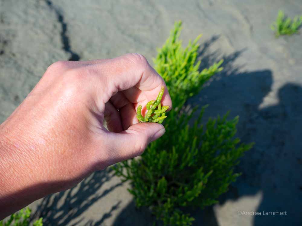 Habt Ihr schon mal Queller gegessen? Diese fleischige Pflanze, die sich als erste auf den Salzwiesen ansiedelt und sie zu Land macht? Sie schmeckt wunderbar nach Meer und ist dabei schön knackig und frisch. Am besten übrigens direkt aus der Salzwiese. Ja, die Salzwiesen. Das ist etwas, was ist an der Nordsee besonders mag.