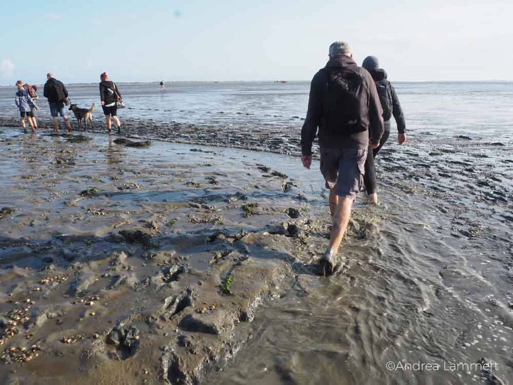 Den grauen Schlick lieben lernt man also erst bei einer Wattwanderung. Und staunt, was die Wattführer alles in der vermeintlich leblosen Erde finden. Ich liebe besonders das Geräusch, wenn das Watt zu atmen scheint: Die vielen Muscheln und Würmer graben sich kleine Gänge im Watt, die prickeln wie die Perlen im Sektglas.