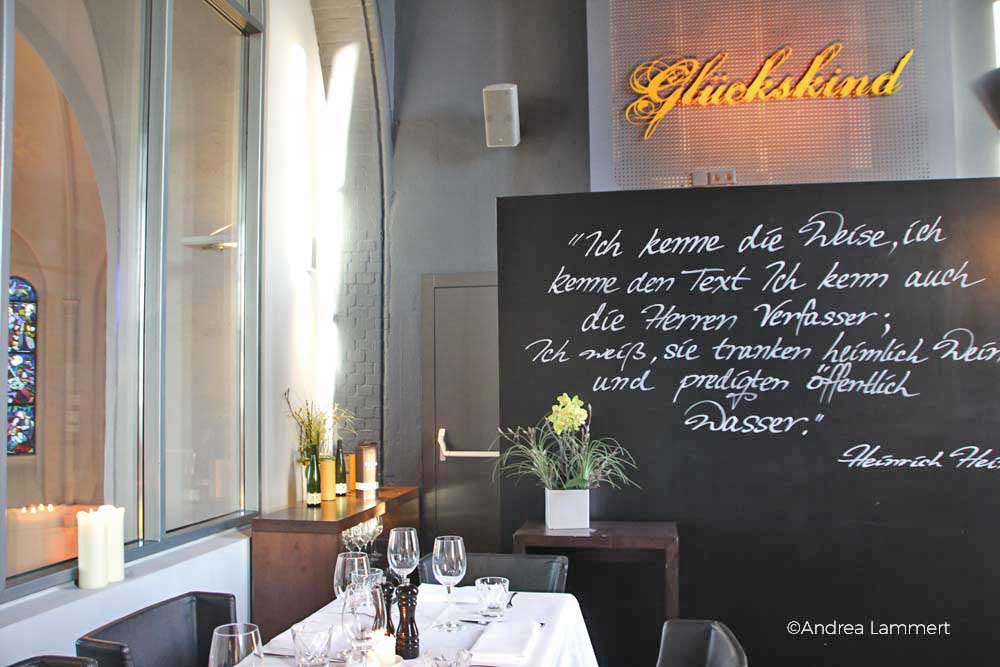 Allein schon dieser Name! Glück und Seligkeit heißt das Restaurant, das wir gerade ansteuern. Wer kann bei so einem Namen schon widerstehen? Nicht nur der Name ist besonders, der ganze Ort ist wohl einzigartig im Raum Ostwestfalen, und so viele dieser Art gibt es in ganz Deutschland nicht, denn es ist ein Restaurant in einer Kirche.