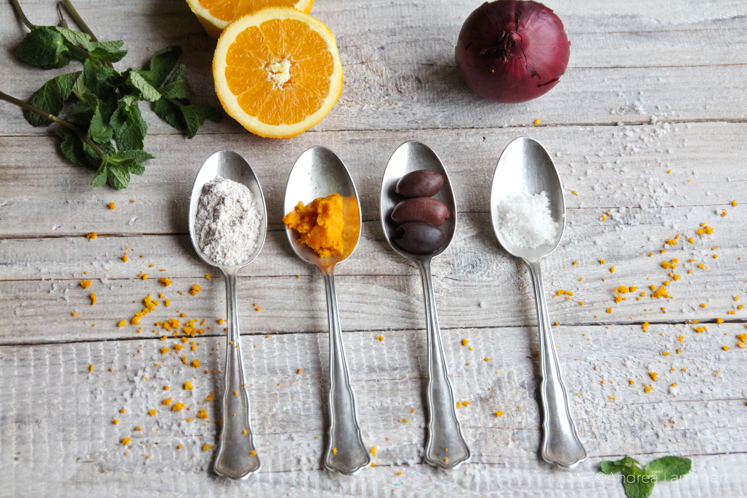 Die Hefe in ein wenig warmen Wasser auflösen, am besten noch einen Teelöffel Zucker hinzugeben, das mögen die kleinen Hefepilze gern. 10 Minuten stehen lassen, bis die Mischung beginnt zu schäumen. In der Zwischenzeit eine Orange auspressen und die Schale abreiben.