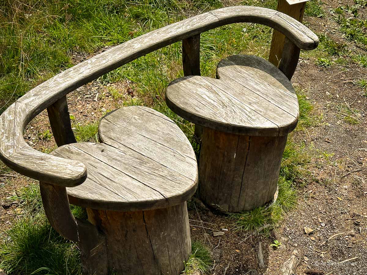 Mein Favorit für einen schönen, langen Spaziergang im Harz ist der Liebesbankweg rund um Hahnenklee. Ich fange in Auerhahn an und gehe das Stück um die Teichkaskade – das ist einfach herrlich in einer Stunde an drei Teichen entlangzulaufen. Die Landesforsten hat auch Menschen die Gelegenheit gegeben, sich am Liebesbankweg mit Schildern zu verewigen, deswegen finden sich dort viele Schilder von Hochzeitspaaren.
