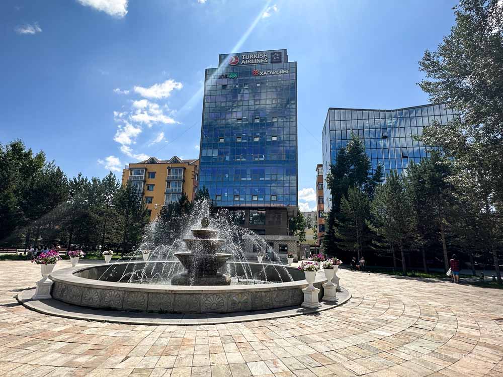 Er ist der zentrale Platz der Stadt und wahrscheinlich monumentalste und wichtigste der Mongolei: Der Sukhbaatar-Platz ist benannt nach Damdin Sukhbaatar. Dieser gilt als Gründungsvater der Mongolischen Volksrepublik. Er marschierte 1921 mit seinen sowjetischen Truppen in der Mongolei ein und wurde Oberbefehlshaber der neu ausgerufenen Volksrepublik. Auf ihn geht auch der Name der Stadt zurück: Roter Held – Ulaanbaatar. Einst befand sich das Mausoleum von Damdin Sukhbaatar, das im Stile von Lenins Grabmal gearbeitet war, an dem Gebäude. Es wurde abgebaut, der Leichnam eingeäschert. Die Witwe des Volkshelden Süchbaataryn Jandschmaa war übrigens 1953/54 Staatspräsidentin der Mongolei und damit eine der ersten Frauen in einer Regierungsposition, viele Jahre vor Isabel Péron.