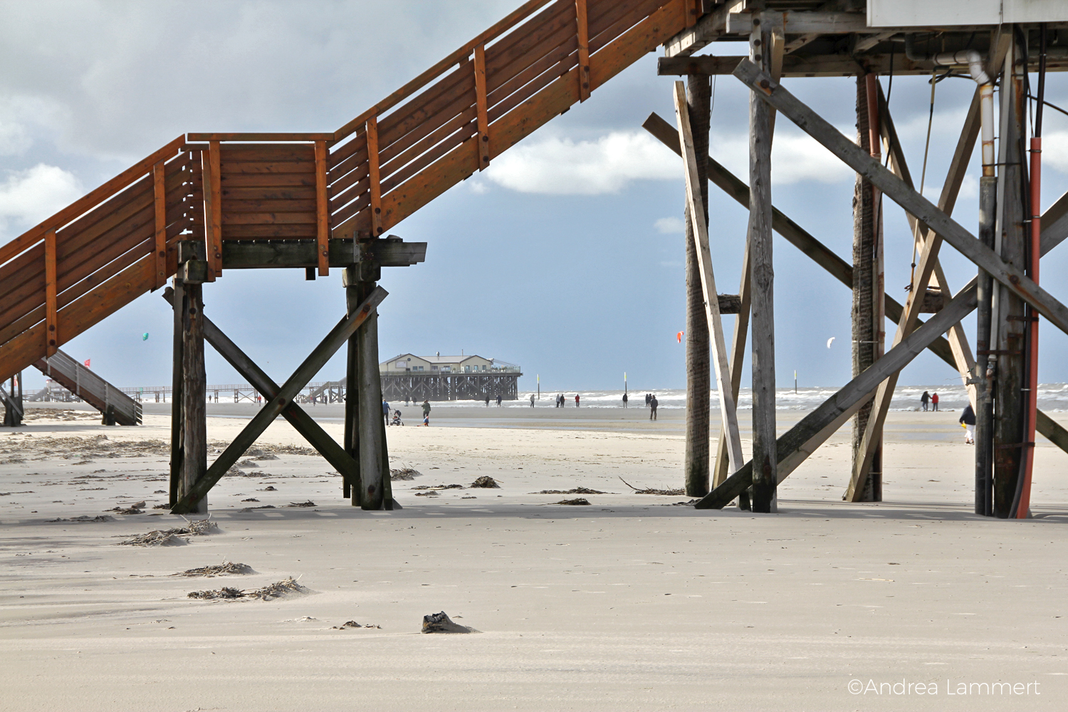 Allein schon die Pfahlbauten sorgen für ein außergewöhnliches Flair. In ihnen sind nicht nur Szenerestaurants untergebracht, sondern auch Toiletten und Badeaufsicht. Während wenige Meter weiter die Kitesurfer sich mit dem Wind gleiten lassen, genieße ich diese quirlige Stimmung der Menschen, die den Ort zu seinem Kultstatus verhelfen. Ja, Sankt Peter galt lange als angestaubt und Kurort der Generation 60 plus, das ist aber längst nicht mehr so.