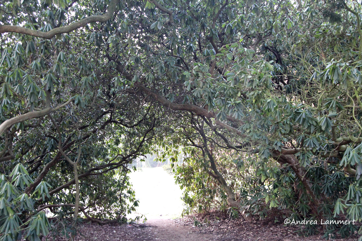 Rhododendren wachsen zu Arkaden zusammen, teilweise sind die Büsche älter als 90 Jahre, das sorgt für eine einzigartige Atmosphäre. Flüsschen, Teiche, Alleen für eine sehr mystische Stimmung in dem denkmalgeschützten Park, vor allem, wenn sich morgens noch Nebel ausgebreitet hat. Viele kleine Seen sorgen locken Enten und manchmal huscht ein Eichhörnchen über den Weg.