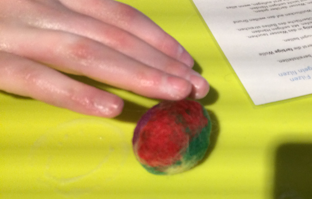 Filme informieren über das Filzen in der Türkei, während die Kinder nebenan im Tobebereich überschüssige Energie abzappeln. Größere Kids versuchen sich selbst im eigenen Werk und rollen einen kleinen Ball aus dem Wollpuschel, den es mit der Eintrittskarte zusammen gab. Und auch die industrielle Seite des Filzens wird dargestellt. Ein wirklich schönes Erlebnis.
