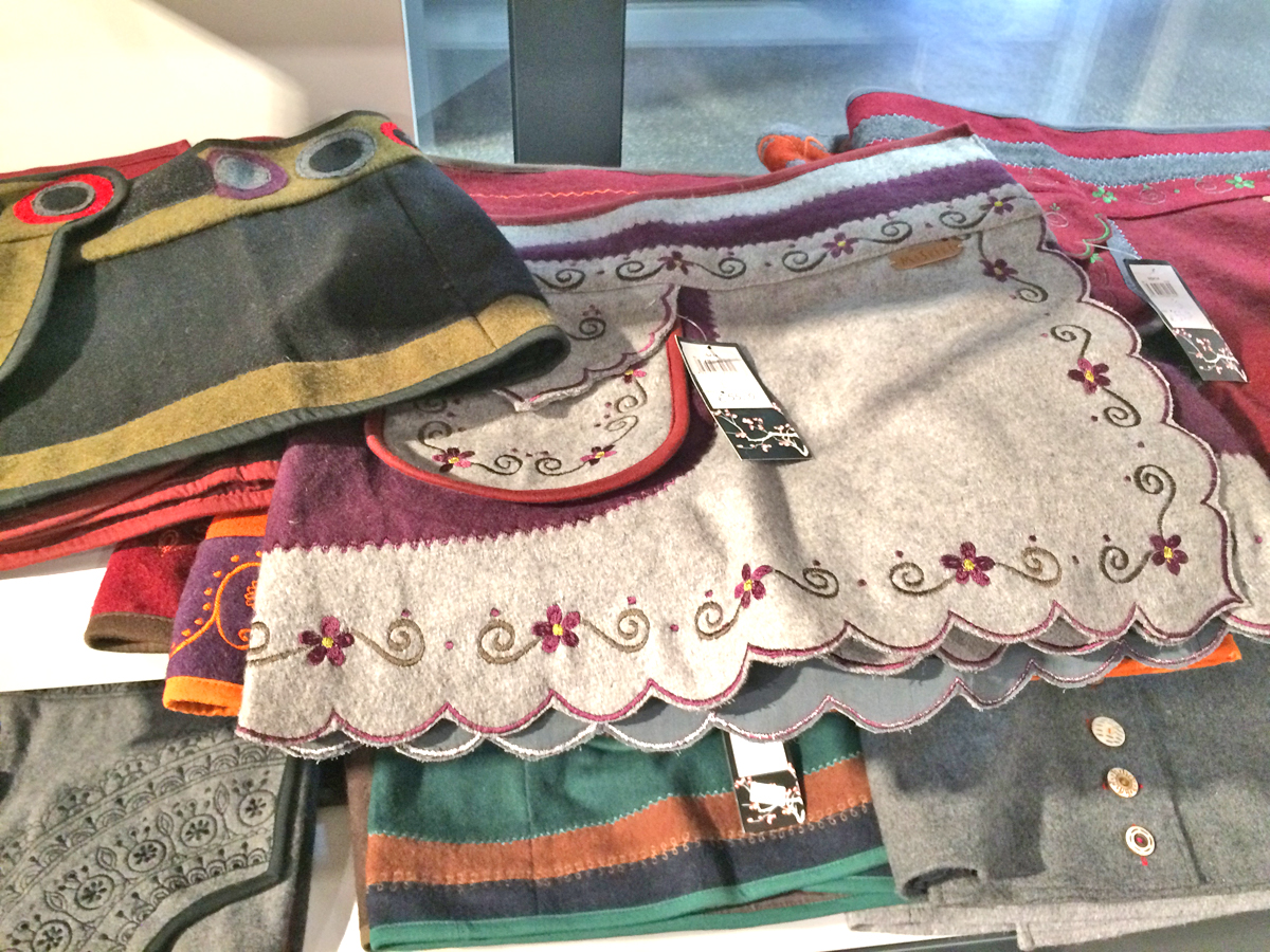 Neben einem Backsteinindustriebau steht das neue Museum. Ein passender Ort, denn das Industriegebäude ist ein altes Filz-Lagerhaus. Schon das kleine Café im Ergeschoss ist ein schöner Tipp, wenn man nach Soltau kommt. Überall leuchtet es in bunten Farben. Ich glaube, es gibt kaum ein Handwerk, das mit derart knalligen und bunten Farben arbeitet wie das Filzen. Taschen, Hüte, Hausschuhe leuchten in rot, blau, pink.