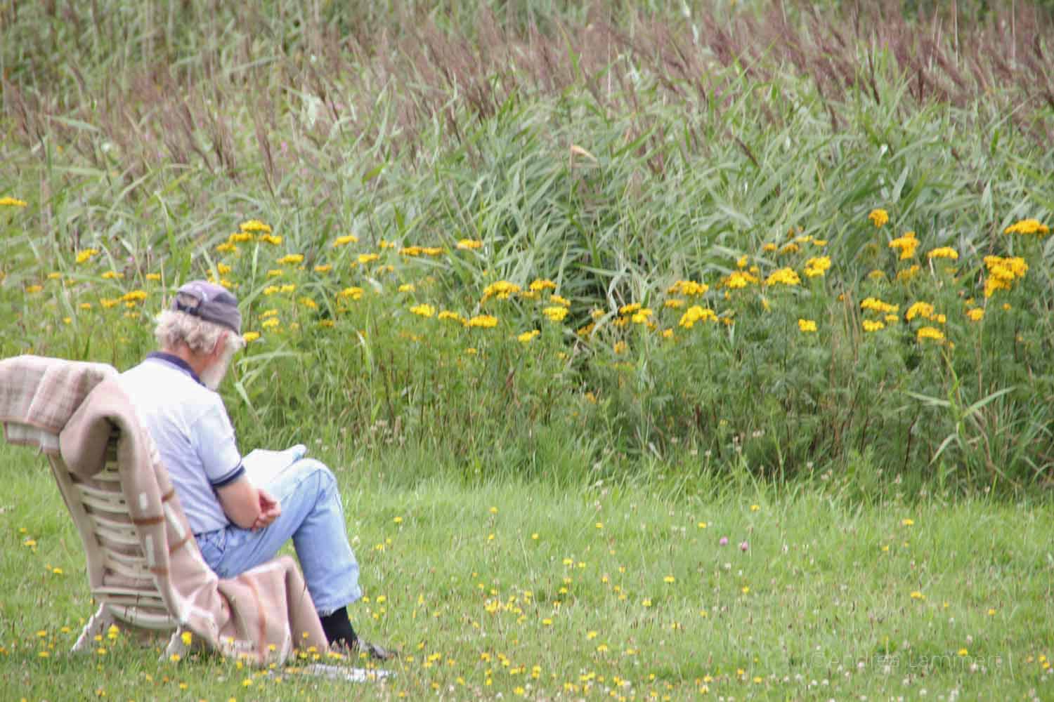 Sie erzählt mir von der Renaturierung der Köge, von den vielen Ornitholgen, die gerne herkommen und von den Krabbenpreisen, die zum Herbst hin fallen. Als ich sie fotografiere, scherzt ein Mann mit Fischermütze mich an: „Und warum fotografieren Sie mich nicht? Ich bin ein echter Dithmarscher!“ Wir müssen alle lachen. Ich mag es eigentlich nicht, Menschen zu fotografieren und sie als „Ausstellungsstücke“ zu meinen Geschichten zu stellen, schon gar nicht, wenn sie sich sträuben oder ich sie überreden muss. Klar, wenn es in der Geschichte um die Person oder den Beruf geht, dann muss es sein, doch in exotischen Ländern habe ich immer meine Probleme damit, Menschen, nur weil sie so schön anders aussehen, zur Schau zu stellen. Aber dieser Dithmarscher hat Freude an dem Shooting – und er sieht wunderbar aus mit der Mütze und den windgeschnitzten Linien im Gesicht. Da kann ich einfach nicht nein sagen.