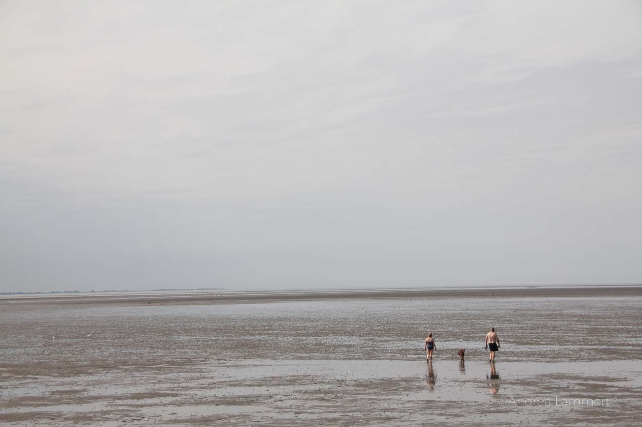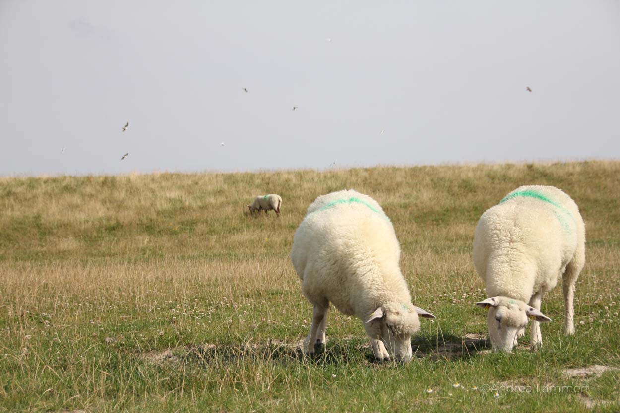 Nordsee mit den Auto ist viel zu schade, also auf in die Natur: Der Salzwind gibt mir gleich eine neue Frisur, meine Haare fühlen sich an, als seien sie mit Omas Wäschestärke behandelt. Der Wind bläst mir rote Farbe in die Wangen und verschafft mir ein angenehmes Kribbeln auf der Haut. Los geht es also, einen kurzen Moment bedauere ich, dass ich keine Inliner mitgenommen habe, denn dieses wäre der perfekte Ort, um dazuhingleiten und voranzukommen in dieser Weite. Doch das lernt man schnell – Eile ist nicht gut, Zeit zu haben ist auch eine Art des Genusses, also lasse ich mich durch die Landschaft treiben und treffe auf Säbelschnäbler, Rauchschwalben und viele andere Vögel, die ich nicht namentlich zuordnen kann.