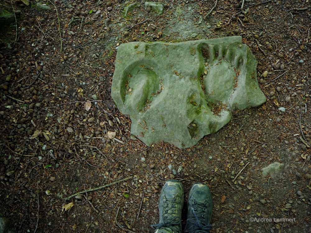 Derartige Abdrücke gibt es auch woanders.Und zwar sind sie, wie der Schalenstein davor, aus einer viel früheren Zeit.