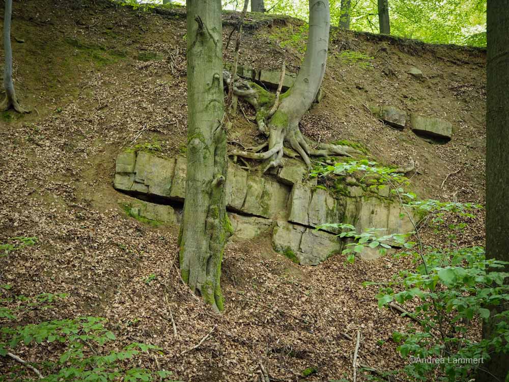 Dann aber war die Kohle aus dem Ruhrgebiet qualitativ besser, leichter zu fördern und hatte eine bessere Infrastruktur. Geblieben ist dennoch viel vom Bergbau im Deister. Fast 100 Stollen hat dieses Wühlen in der Erde hinterlassen, ein Wanderweg führt sogar direkt von der Wennigser Mark über eine alte Kohlenstraße bis hin zum Kammweg. Auf diesem Weg befindet sich auch der Teufelssprung, ein Denkmal, das man allzuschnell übersehen kann, wenn man, wie ich, fasziniert auf die andere Seite des Weges schaut und den kleinen Talkessel dort erkundet.