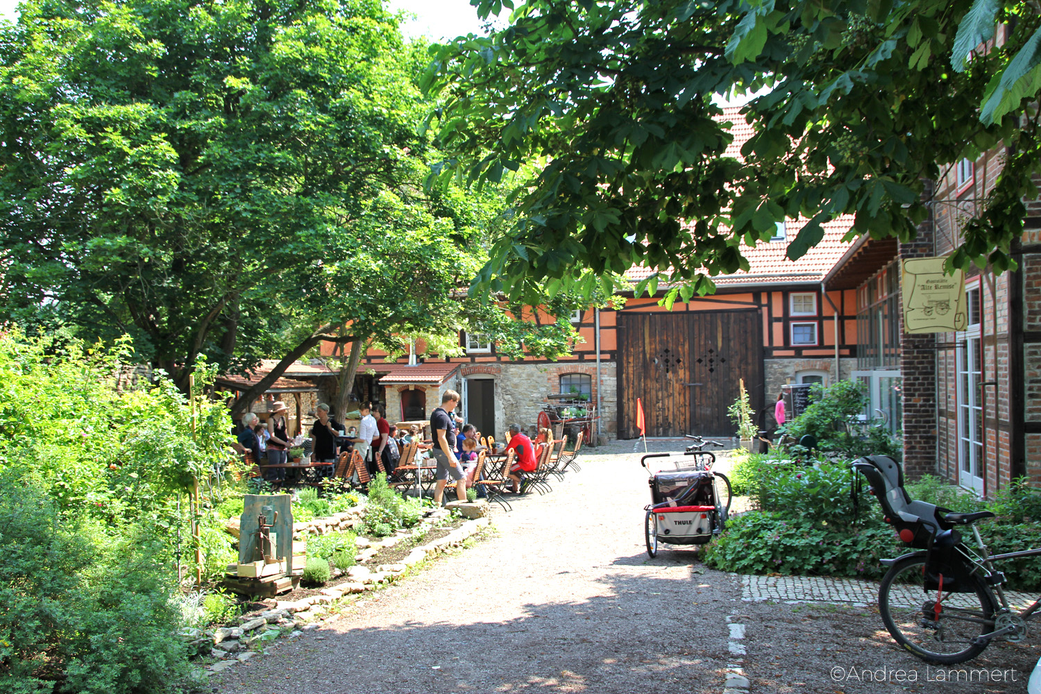 Gleich neben dem Eingang liegt die Alte Remise, ein schöner Biergarten und ein wunderbares Ausflugslokal – mit leckeren Flammkuchen!