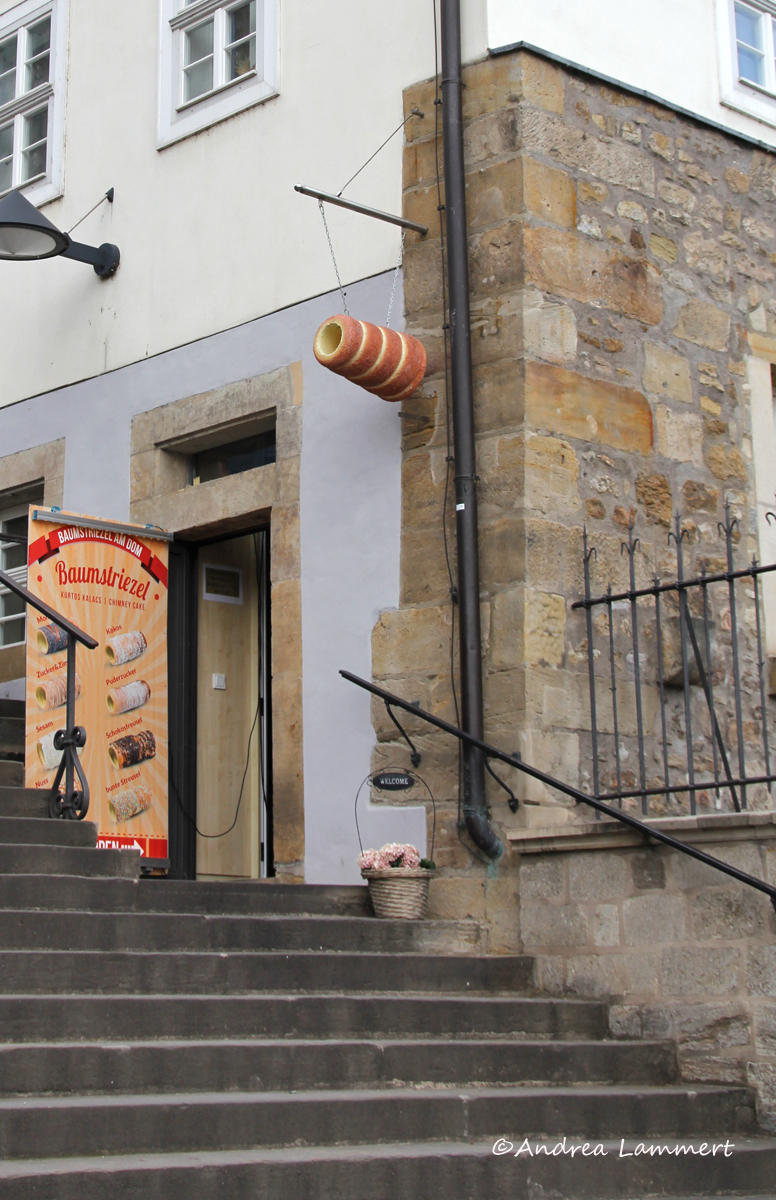 Baumstriezel: Es ist das süße Gegenstück zum ungarischen Abendbrot – die böhmischen Baumstriezel an den Domtreppen. Genau richtig gelegen, um ein kleines Naschpäuschen zu machen, bevor man die letzten Meter weiter hoch klettert.