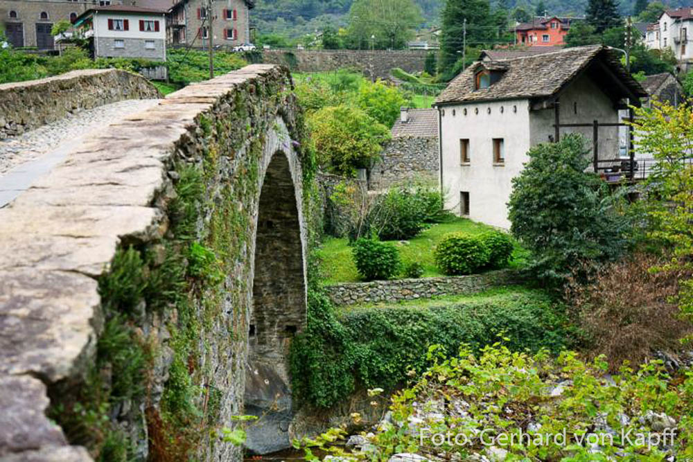 Das malerische Örtchen Giornico hat einige Überraschungen zu bieten. Es ist das einzige Dorf der Region, das über eine Flussinsel verfügt. Die beiden romanischen Brücken verbinden die beiden Ortsteile, deren Bewohner einst in verbissener Rivalität darum kämpften, wer wohl die gläubigeren Christen waren.