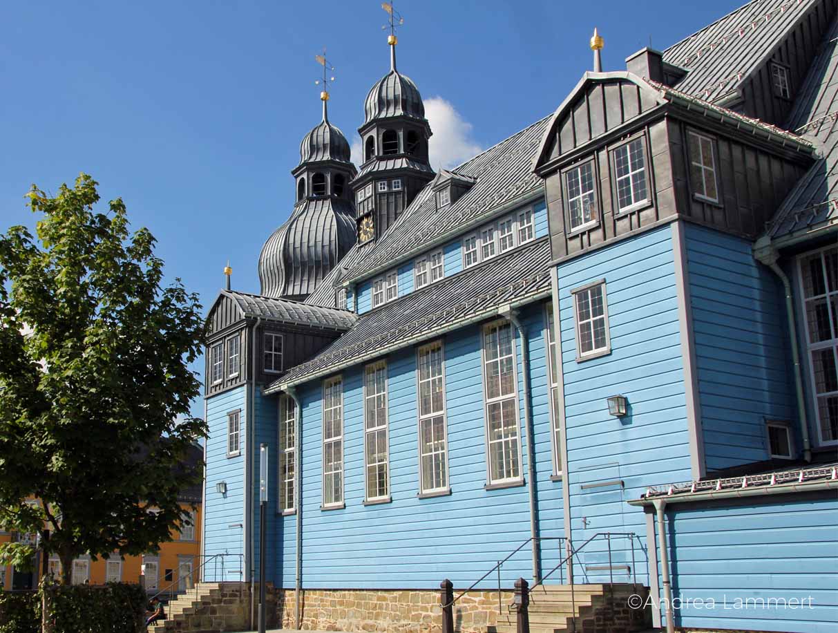 Blau erstrahlt sie mitten in Clausthal: Mit 57 Metern Länge und 26 Metern Breite ist die Heilig-Geist-Kirche Clausthal die größte Holzkirche in Europa. Sie stammt aus dem 17. Jahrhundert und ist bis heute ein Zeugnis des Reichtums, den der Bergbau einst in den Harz gebracht hat. Möchtest du mehr Tipps und Sehenswürdigkeiten in Clausthal-Zellerfeld wissen? In meinem Artikel verrate ich dir auch Geheimtipps.