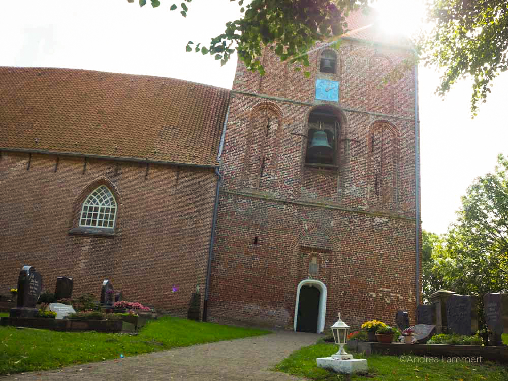 Zwar wurde er 1450 auf Eichenpfählen errichtet, aber diese haben im Laufe der Zeit nachgegeben, so dass der Turm der Kirche nun deutlich geneigt ist. Die besten Fotos vom Turm bekommt man übrigens aus der Ferne. Denn der Turm ist echt schwer zu fotografieren. Ein wenig zählt er übrigens noch zu Ostfrieslands Geheimtipps.