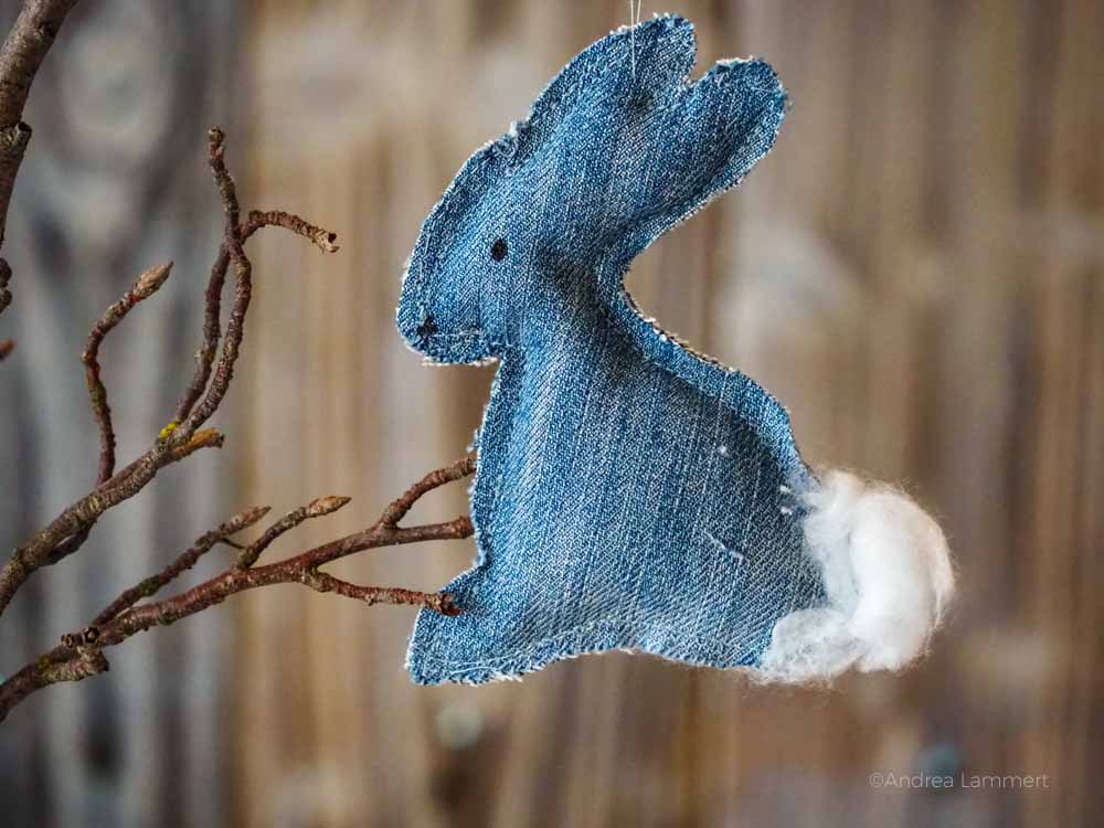 Jeans eigenen sich perfekt aus Grundstoff für viele Dinge. Wie wäre es, aus den alten Hosen Osterhasen zu nähen? Eine Anleitung mit Schnittmuster für Osterhasen aus Jeans.