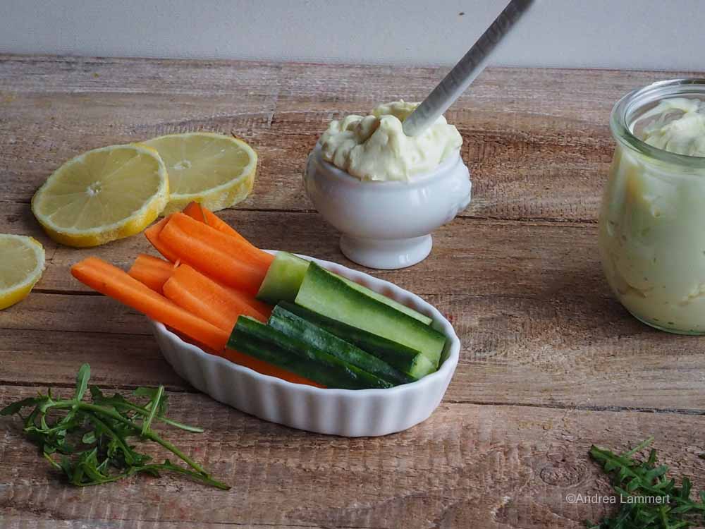 Mayonnaise ist ja immer so eine Sache. Kauft man sie im Supermarkt, sind da oftmals Eier mit dubioser Herkunft drin, sprich Bodenhaltung. Das kommt für mich nicht infrage und ist zudem irgendwie unappetitlich – finde ich. Ich mag keine tierischen Erzeugnisse, die mit Leid aufgewachsen sind. Da meine Kinder Kartoffelecken lieben und auf Burger bestehen, blieb mir nichts anderen übrig, als mit Mayonnaise herumzuexperimentieren. Und was soll ich sagen? Ich finde es schwierig, echte Mayannaise zu machen, meine wurde immer zu flüssig. Und dann bleibt noch immer die Sache mit den Eiern, selbst wenn ich die Mayo selbst mache, weiß ich nicht, wielange sie dann haltbar ist, Eier finde ich als Lebensmittel ja unglaublich sensibel und heikel. Deswegen bin ich irgendwann bei veganer Mayonnaise gelandet. Zuerst aus dem Bioladen und jetzt aber hab ich mich endlich getraut, herumzuexperimentieren. Eine Freundin hatte mich ermuntert und mir ihre Rezept verraten. Tatsächlich ist es gar nicht schwer. Vor allem aber dickt die Mayonnaise viel schöner als meine Versuche mit Eiern.