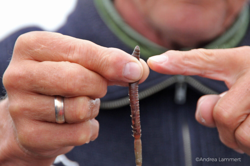 Es ist nicht einfach irgendein Wurm. „Seht Ihr diese Sandspaghetti hier“, fragt Wattführer Heino. Nur wenige Sekunden später zieht er routiniert einen langen Wurm aus dem Schlick. „Das ist der Sandpierwurm. Er ist die Lunge unseres Watts.“ Der Wurm gräbt einen u-förmigen Gang, frisst dabei den Sand und scheidet ihn wieder aus. Die organischen Teile verwertet er als Futter. Es ist der Wurm, der den Boden stärkt. Seine Löcher belüften das Watt, das sonst weich und stinkend sein würde. „Er filtert unseren planktonreichen Boden. Gäbe es den Sandpierwurm nicht, würde unser Watt verschlicken.“