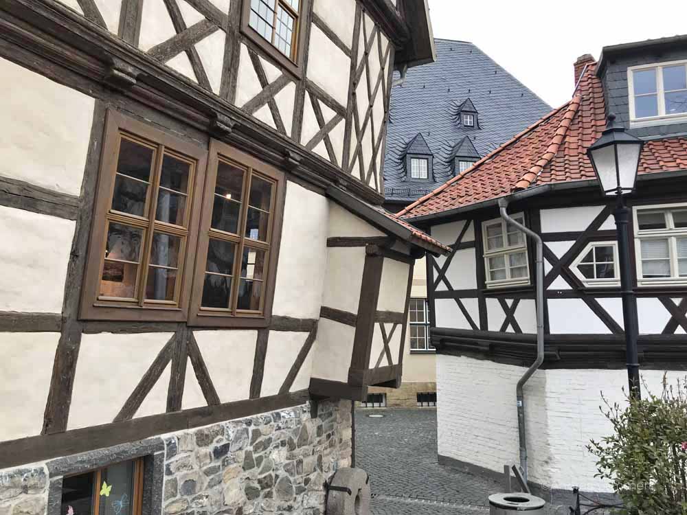 Gleich hinter dem Museum Schiefes Haus tut sich ein weiteres, sehenswertes Fachwerkensemble auf: Das Harzmuseum und das gegenüberliegende, japanische Restaurant vereinen sich zu einem schönen Panorama. Um die Ecke liegt auch die Harzbibliothek.
