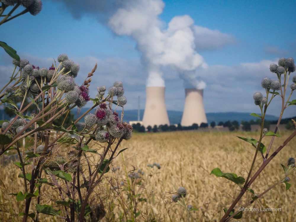 Da tauchen sie plötzlich auf, die rauchenden Riesentürme des Kernkraftwerkes Grohnde. Leider sind sie in dieser Region total dominant und lassen sich nicht beschönigen. Das KKW liegt am wunderschönen Teil der Weser und arbeitet zumindest noch dieses Jahr vor sich hin. 2021 soll es stillgelegt werden. Doch der Bau wird wohl noch länger erhalten bleiben und immer auch das Panorama beeinträchtigen. Keine Sehenswürdigkeit im Weserbergland, aber etwas, was irgendwie omnipräsent ist. Übrigens scheint es mir, als würden die KKW immer an landschaftlich besonders reizvollen Orten geplant, denn auch das AKW Krümmel an der Elbe oder Brunsbüttel verschandeln dort einfach die wunderschöne Gegend.
