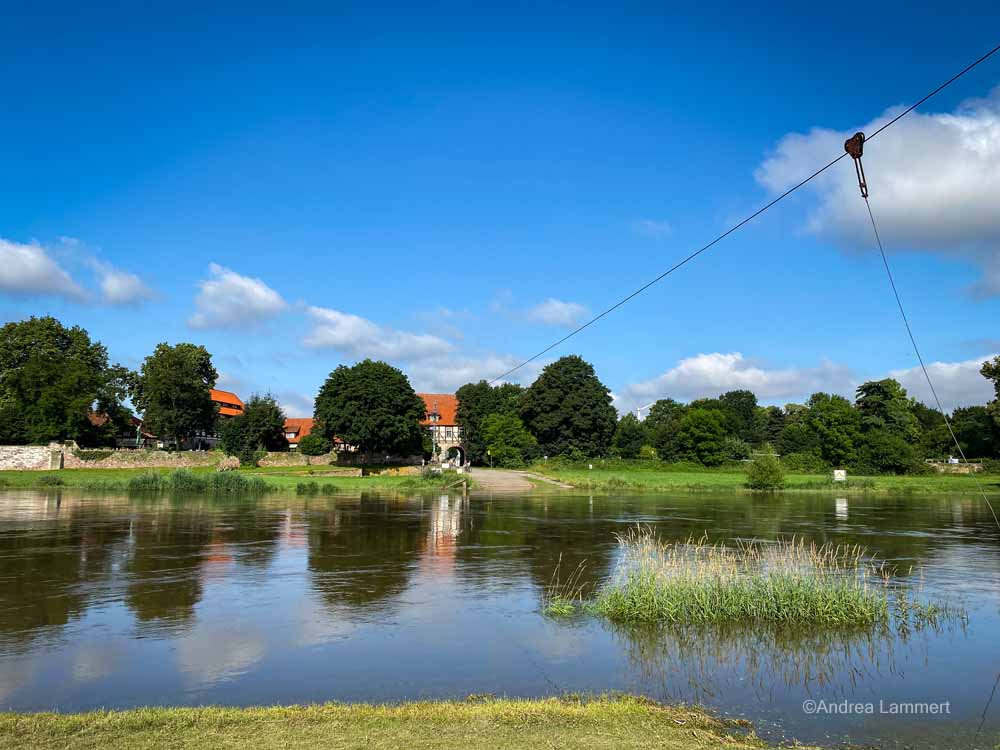 Ein wenig hügelig, die Weser als blaues Band, die sich durch die Landschaft windet und kleine Fachwerkstädte – unterwegs im Herz des Weserberglands.