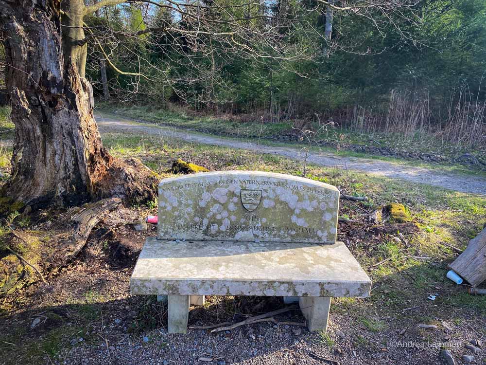 Doch Steinkrug ist ja nur der Ausgangspunkt der Wanderung zum Taternpfahl. Von dort aus geht es erneut zu den Knigges. Am eingezäunten Privatfriedhof vorbei immer ein wenig bergauf gen Süden. Als ich am Friedhof vorbei schlenderte, stand Herr Knigge dort übrigens höchst persönlich und stattete seinen verstorbenen Vorfahren einen Besuch ab.