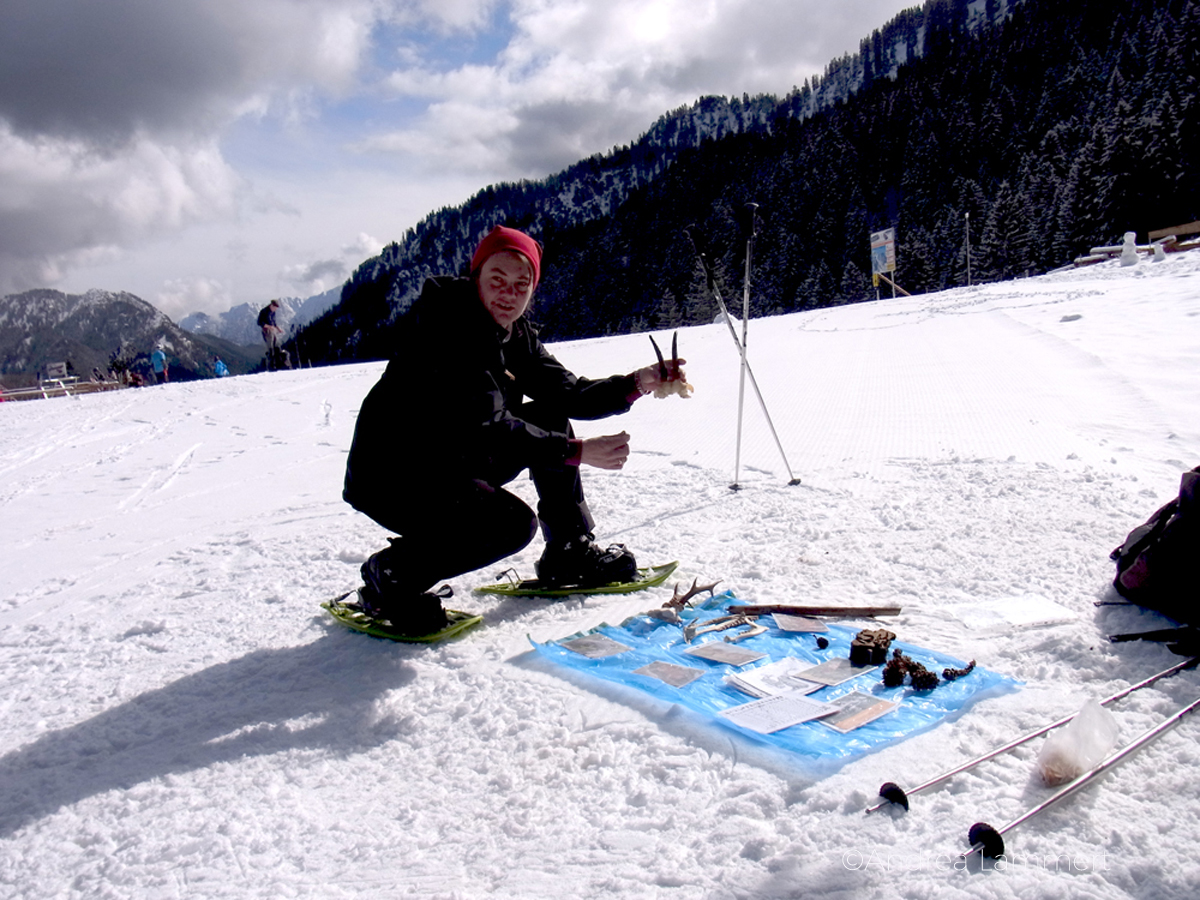 Sanft und sinnvoll ist das Aktivitätenprogramm der Jugendherberge Oberammergau. Dort habe ich nicht nur gelernt, Mozzarrella selbst zu machen, sondern auch Spuren zu lesen. In einem Wildniskurs.Merkwürdig sind diese Dinger an den Füßen. Keine rutschigen Ski und zu klobig für Schuhe. Doch eigentlich ganz prima, denn in der festen Schneedecke sackt man nicht ein. Ich stehe auf Schneeschuhen
