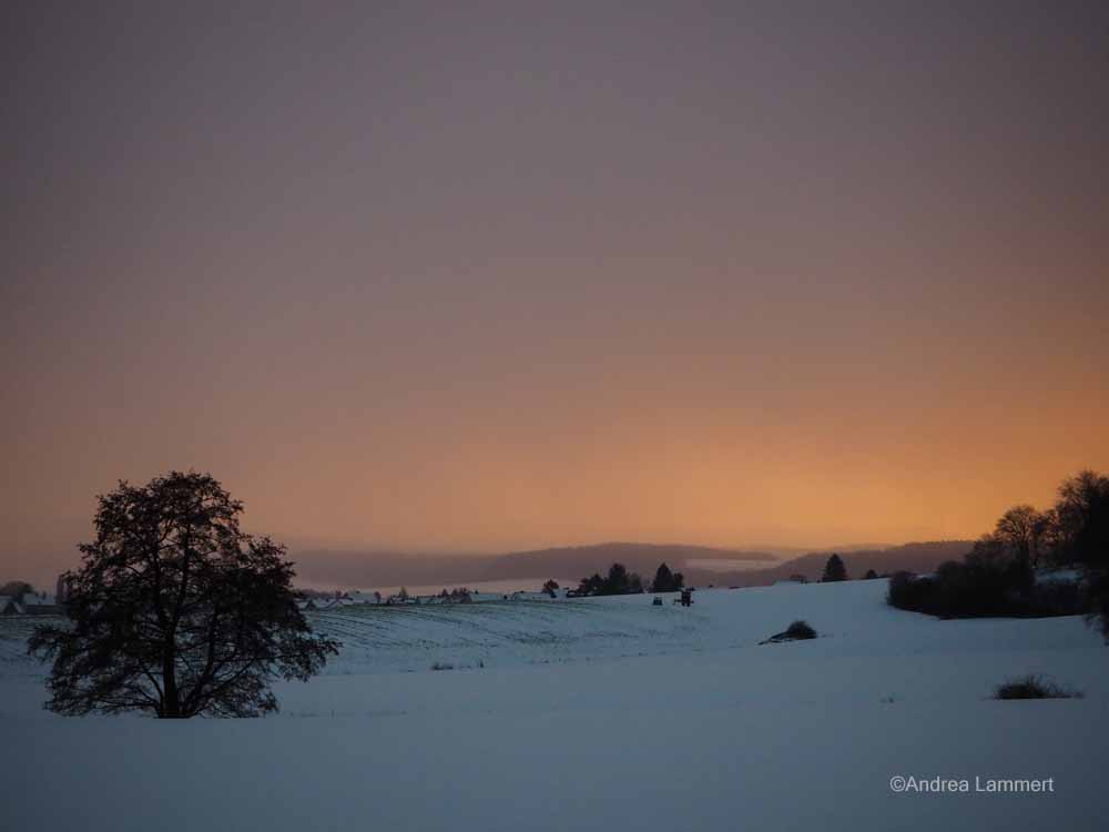 Bei uns gibt es sogar Skilifte, doch der war jetzt zehn Jahre nicht in Betrieb, weil das Klima den eisigen Winter einfach abgeschafft hatte. Manche Menschen nennen unsere Region auch die Toskana des Nordens und im Buch „Hiergeblieben“ habe ich sie auch als solche verewigt. Während mir im Sommer oftmals das Wasser fehlt (irgendwas ist ja immer), mag ich unsere „Berge“ im Winter besonders gern. Vor allem an so Frostmorgenden wie heute.