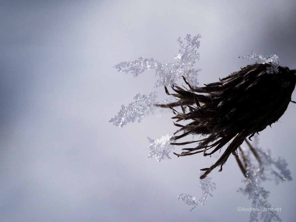Es war mit minus 18 Grad so kalt, dass meine Finger beim Fotomachen sofort schmerzten und schon wenige Minuten reichten, dass sie taub wurden, deswegen konnte ich leider nicht so viele Bilder vom Raureif machen, wie ich wollte. Dafür habe ich das mit Eiskristallaufnahmen dann ausgeglichen. Hier kommt also meine Bilderreise durch den Winter im Calenberger Land.
